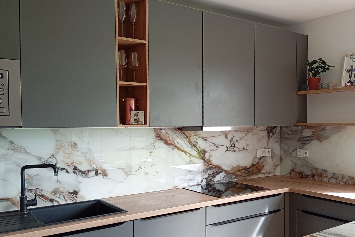 - skleněné obklady do kuchyně